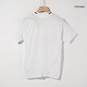 The Real Madrid Jersey uses a slightly simpler, minimalist design than the 23/24 season. New Real Madrid Jersey applies white as the main colour, accompanied by black lines in the shoulder area and around the collar. Please note that Real Madrid Jersey 24/25 removes the gold stripes. The garment will also feature a Houndstooth pattern that will only be visible to the most attentive eyes. Real Madrid Jersey is subtly impregnated into the 'background' of the polyester and is a very popular fashion statement. The Real Madrid replica football jerseys were inspired by the ‘chulapo’ costumes worn at the annual San Isidro festival in Madrid. The Real Madrid Jersey 2024 is made from 100% high quality polyester which wicks away moisture to keep you dry and comfortable. Light and thin fabric of Real Madrid replica football jerseys is good for players when they plays on the pitch.With the joining of Mbappe, Real Madrid are already expected to achieve greater success in the future.