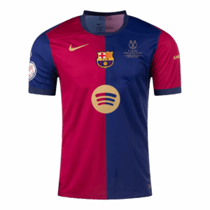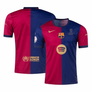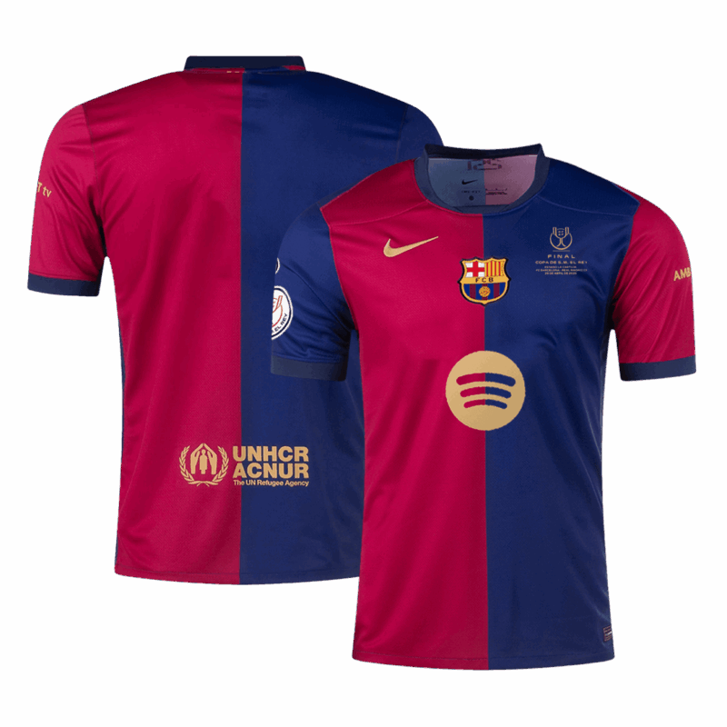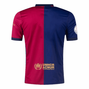 Let me introduce the new Barcelona Jersey Home 2024/25, available for size S,M,L,XL,2XL,3XL,4XL. The Barcelona Jersey Home 24/25 pays homage to 125-year history of FC Barcelona. The Barcelona kit combines royal blue, navy, and red with gold logos. In terms of design, Barcelona jersey is half blue and half maroon. The Swoosh and Spotify logos are gold, while the badge colors remain the same as before. The neckline and cuffs are navy blue. What's more, there is a 125-anniversary logo embroidered in the collar. So obviously if you are a big fans of FC Barcelona, it's worth collecting, you can’t miss this Barcelona jersey. Moreover, Our uses lightweight polyester interlock fabrics to create a Barcelona jersey that mirrors the fit and feel of the Barcelona kit worn by FC Barcelona on the pitch.