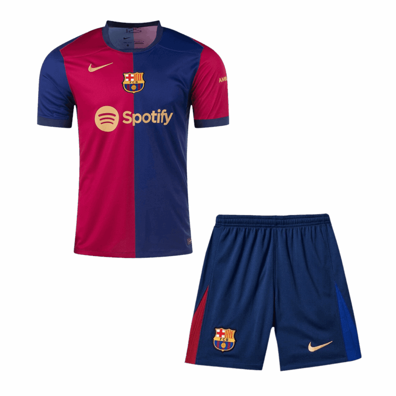 Let me introduce the new Barcelona Jersey Home 2024/25, available for size S,M,L,XL,2XL,3XL,4XL. The Barcelona Jersey Home 24/25 pays homage to 125-year history of FC Barcelona. The Barcelona kit combines royal blue, navy, and red with gold logos. In terms of design, Barcelona jersey is half blue and half maroon. The Swoosh and Spotify logos are gold, while the badge colors remain the same as before. The neckline and cuffs are navy blue. What's more, there is a 125-anniversary logo embroidered in the collar. So obviously if you are a big fans of FC Barcelona, it's worth collecting, you can’t miss this Barcelona jersey. Moreover, Our uses lightweight polyester interlock fabrics to create a Barcelona jersey that mirrors the fit and feel of the Barcelona kit worn by FC Barcelona on the pitch.
