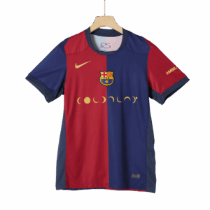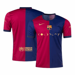 Let me introduce the new Barcelona Jersey Home 2024/25, available for size S,M,L,XL,2XL,3XL,4XL. The Barcelona Jersey Home 24/25 pays homage to 125-year history of FC Barcelona. The Barcelona kit combines royal blue, navy, and red with gold logos. In terms of design, Barcelona jersey is half blue and half maroon. The Swoosh and Spotify logos are gold, while the badge colors remain the same as before. The neckline and cuffs are navy blue. What's more, there is a 125-anniversary logo embroidered in the collar. So obviously if you are a big fans of FC Barcelona, it's worth collecting, you can’t miss this Barcelona jersey. Moreover, Our uses lightweight polyester interlock fabrics to create a Barcelona jersey that mirrors the fit and feel of the Barcelona kit worn by FC Barcelona on the pitch.