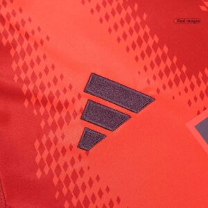 The new Bayern Munich jersey is the first in the club's history to feature three shades of red without any white. Bayern Munich kit uses interlocking dark and light wavy stripes, the club's famous primary colours, are rarely seen on other jerseys and enhance the uniqueness, while a small number of black stripes embellish the sleeves and crest, creating a sophisticated and eye-catching design for this Bayern Munich jersey". The club motto "Mia san Mia" (meaning "We are who we are") adorns the outer back collar of the Bayern kit, symbolising the unity of the players and the unwavering love of the fans along the way. Wearing this Bayern Munich jersey with advanced fabric, giving you a lightweight fit and feel, providing you with superior comfort whether you're in the stands or at home on this Bayern Munich kit.  Mesh panels at the armpits, sides and lower back provide added breathability and comfort so you can flaunt your undying fandom with easeIf you are a fans of Bayeren Munich, you won't regret purchasing this Bayern Munich jersey, come on, get it!