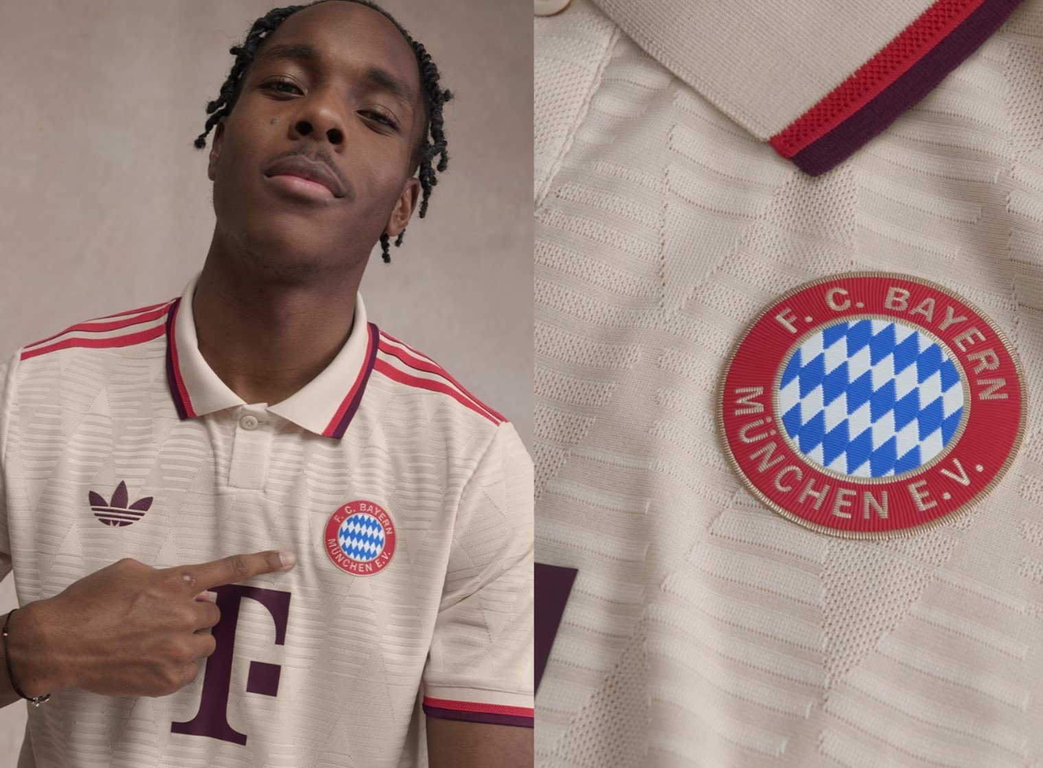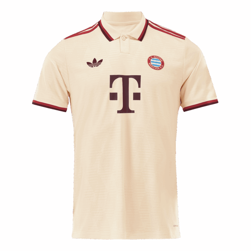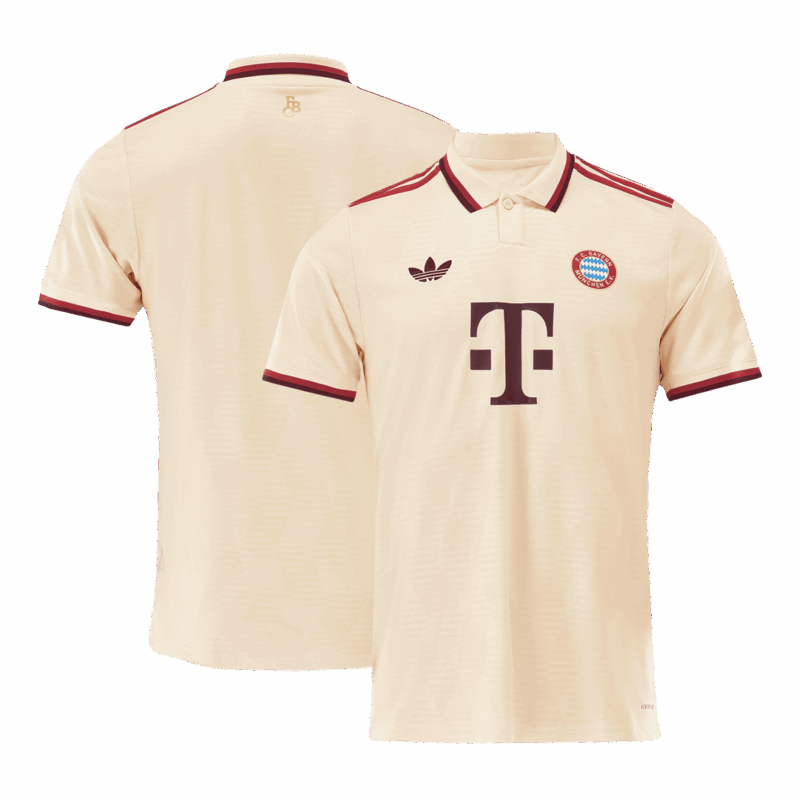 Let me introduce the new Bayern Munich Jersey Third Away 2024/25, available for size S,M,L,XL,2XL. Bayern Munich Jersey third away for the 2024-25 season will be Linen with a dark red logo and bright red trim. The bright red trim on bayern munich third kit is spread across the collar, the bottom of the sleeves and on the shoulders. Instead of the regular round neck, the Bayern Munich jersey has been designed with a polo collar, giving the Bayern Munich jersey a clean and minimalist look. Moreover, Our uses lightweight polyester interlock fabrics to create a Bayern Munich jersey that mirrors the fit and feel of the Bayern Munich kit worn by FC Bayern Munich on the pitch. Machine washable. Turn the Bayern Munich jersey away inside out to wash with cold water on a gentle cycle to prevent bayern munich 24/25 kit from fading. Let's get the Bayern Munich cheap soccer jerseys now!