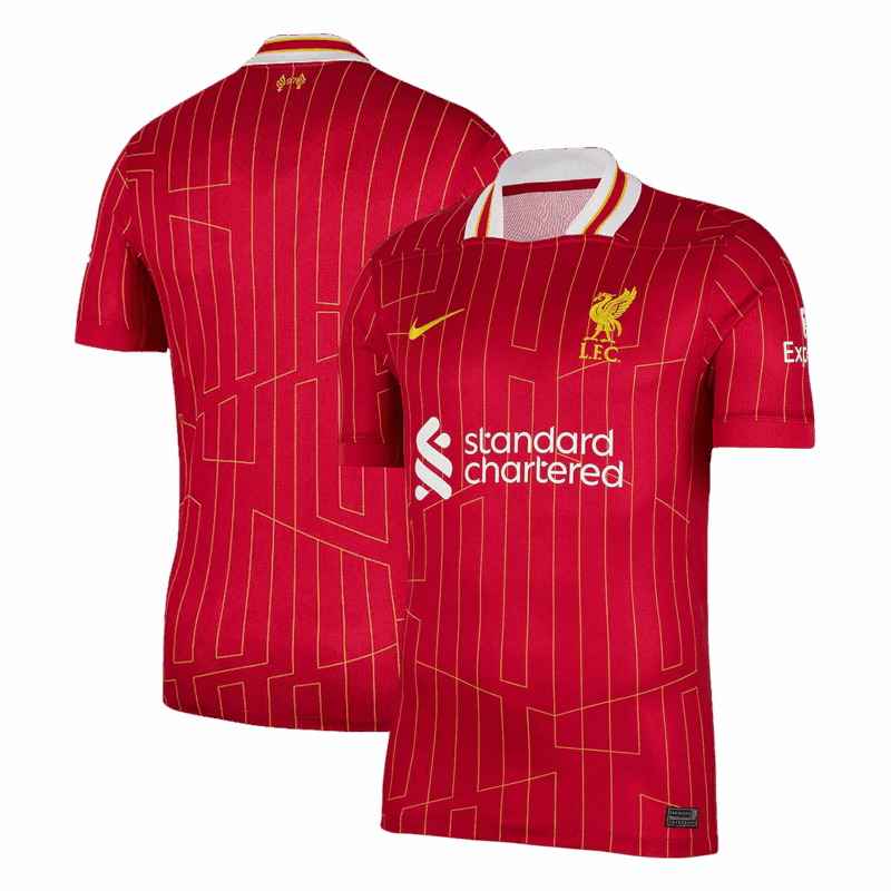 Let me introduce the new Liverpool Soccer Jersey Home 2024/25, available for size S,M,L,XL,2XL,3XL,4XL,5XL. Camiseta del liverpool is made of 100% polyester of very good quality and camiseta liverpool is designed into regular fit. camiseta de liverpool for the 2024-25 season will be Gym Red with White, and Chrome Yellow. On the surface of this Liverpool Soccer jersey,a unique ''YNWA" pattern is added to bring something specail on this Liverpool Soccer jersey. What's more, Liverpool 24/25 kit is worn by the likes of Mohamed Salah, Virgil van Dijk, Darwin Núñez, Trent Alexander-Arnold, Federico Chiesa and Dominik Szoboszlai. Machine washable.Turn the Liverpool home kit 24/25 inside out to wash with cold water on a gentle cycle to prevent Liverpool soccer jersey from fading. Our uses lightweight polyester interlock fabrics to create a Liverpool 24/25 kit that mirrors the fit and feel of the Liverpool new jersey worn by FC Liverpool on the pitch. So let's get the Liverpool home kit 24/25 now!