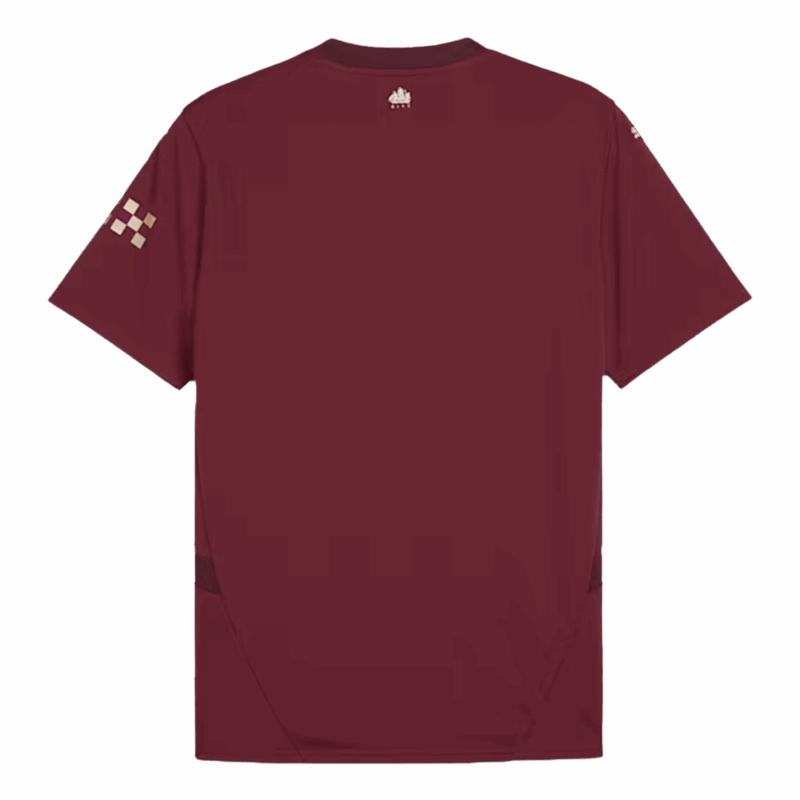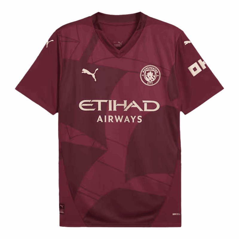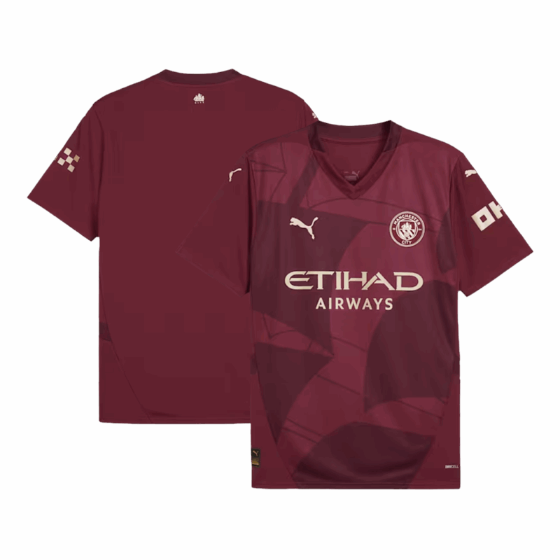 Let me introduce the new Manchester City Jersey Third Away 2024/25, available for size S,M,L,XL,2XL,3XL,4XL. The color combo of the Manchester City jersey is reminiscent of the Umbro 2012-13 away Manchester City kit. This Manchester City jersey will be worn by the club during their Premier League,UEFA Champions League, EFL Cup and FA Cup campaigns in the upcoming season. This Manchester City jersey features a classic burgundy color and metallic gold trim. This ship from the Manchester City badge is a symbol of the club's rich history. This design element represents Manchester City's past, present and future, reflecting the drive and ambition of Manchester. Moisture-wicking technology adds extra breathability and comfort to the Manchester City jersey, so you can wear the Manchester kit for any occasion.
