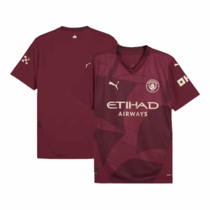 Let me introduce the new Manchester City Jersey Third Away 2024/25, available for size S,M,L,XL,2XL,3XL,4XL. The color combo of the Manchester City jersey is reminiscent of the Umbro 2012-13 away Manchester City kit. This Manchester City jersey will be worn by the club during their Premier League,UEFA Champions League, EFL Cup and FA Cup campaigns in the upcoming season. This Manchester City jersey features a classic burgundy color and metallic gold trim. This ship from the Manchester City badge is a symbol of the club's rich history. This design element represents Manchester City's past, present and future, reflecting the drive and ambition of Manchester. Moisture-wicking technology adds extra breathability and comfort to the Manchester City jersey, so you can wear the Manchester kit for any occasion.