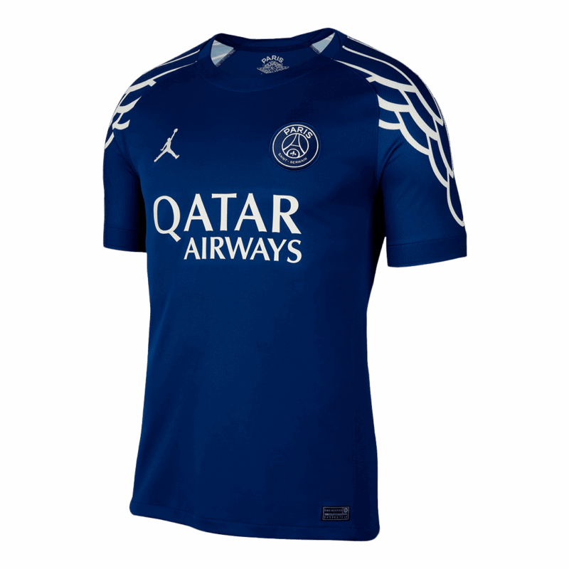 Let me introduce the PSG Jersey Fourth Away 2024/25, available for size S,M,L,XL,2XL,3XL,4XL. This PSG jersey commemorates the remarkable 40-year legacy of the Air Jordan 1, this PSG kit is presented in a striking Navy and light gray colorway. PSG jersey fourth away 24/25 features a classic crew neckline and short sleeves, enhanced by sweat-wicking Dri-FIT technology that keeps you feeling dry throughout your endeavors. Adorned with the iconic Jordan Wings logo, this PSG jersey fourth away 24/25 stands as a tribute to the sneaker that ignited it all. Moreover, Our uses lightweight polyester interlock fabrics to create a PSG Jersey that mirrors the fit and feel of the PSG kit worn by PSG on the pitch. So let's get the PSG cheap soccer jerseys now!