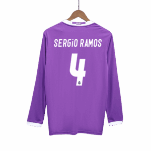 レアルマドリード SERGIO RAMOS #4 アウェイ サッカーユニフォーム Retro 2016/17 – 長袖