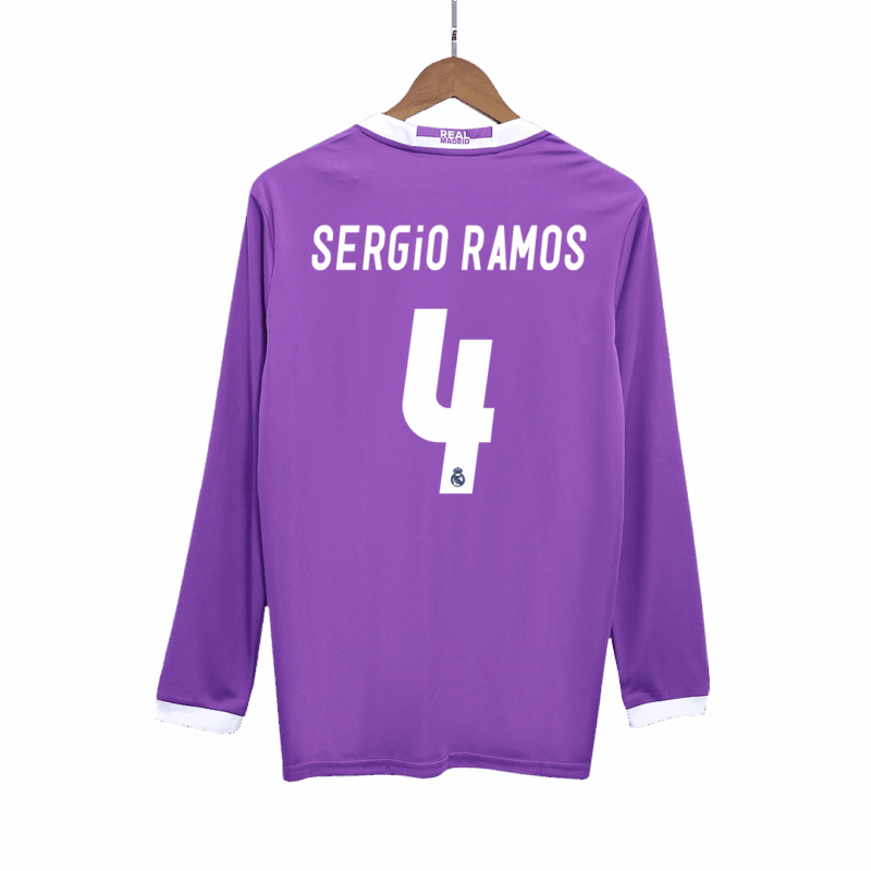 レアルマドリード SERGIO RAMOS #4 アウェイ サッカーユニフォーム Retro 2016/17 - 長袖